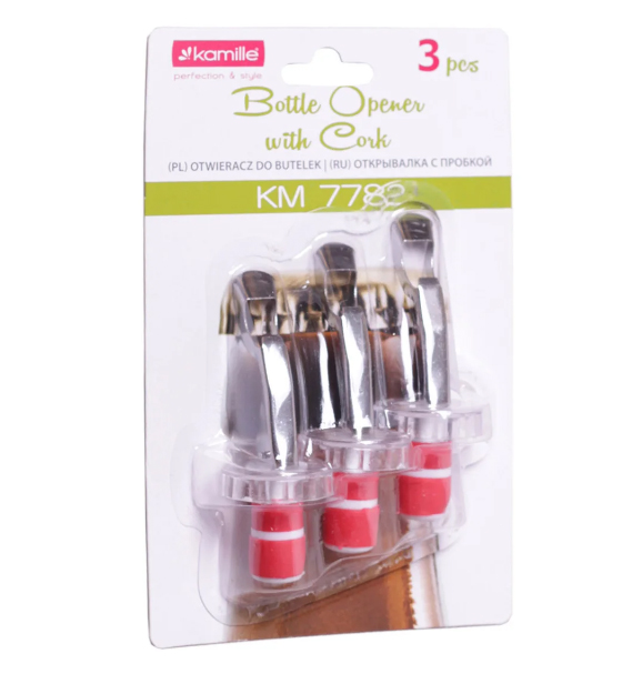 Комплект из 3 пробок для бутылок с открывалками Kamille KM-7782